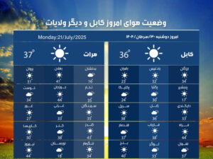 آب و هوا آب و هوای امروز-افغانستان خبرگزاری حاما جولای 21, 2025 آب و هوای امروز-افغانستان #آب_هوا_خبرگزاری_حاما Continue Reading Previous: دیدار امیرخان متقی با فیلیپو گراندی،کمیشنری عالی سازمان ملل متحد در امور پناهنده گان.Next: شاروالی کابل: تا ده سال آینده کابل به شهر معیاری تبدیل خواهد شد. جواب دهید لغو جوابنشانی ایمیل شما منتشر نخواهد شد. بخشهای موردنیاز علامتگذاری شدهاند *دیدگاه * نام * رایانامه (نامه برقی) * وبلاگ اسم، ایمیل و عنکبوتنمای مرا در مرورگر ذخیر کن برای اینکه بعداً ابراز نظر کنم. Δ